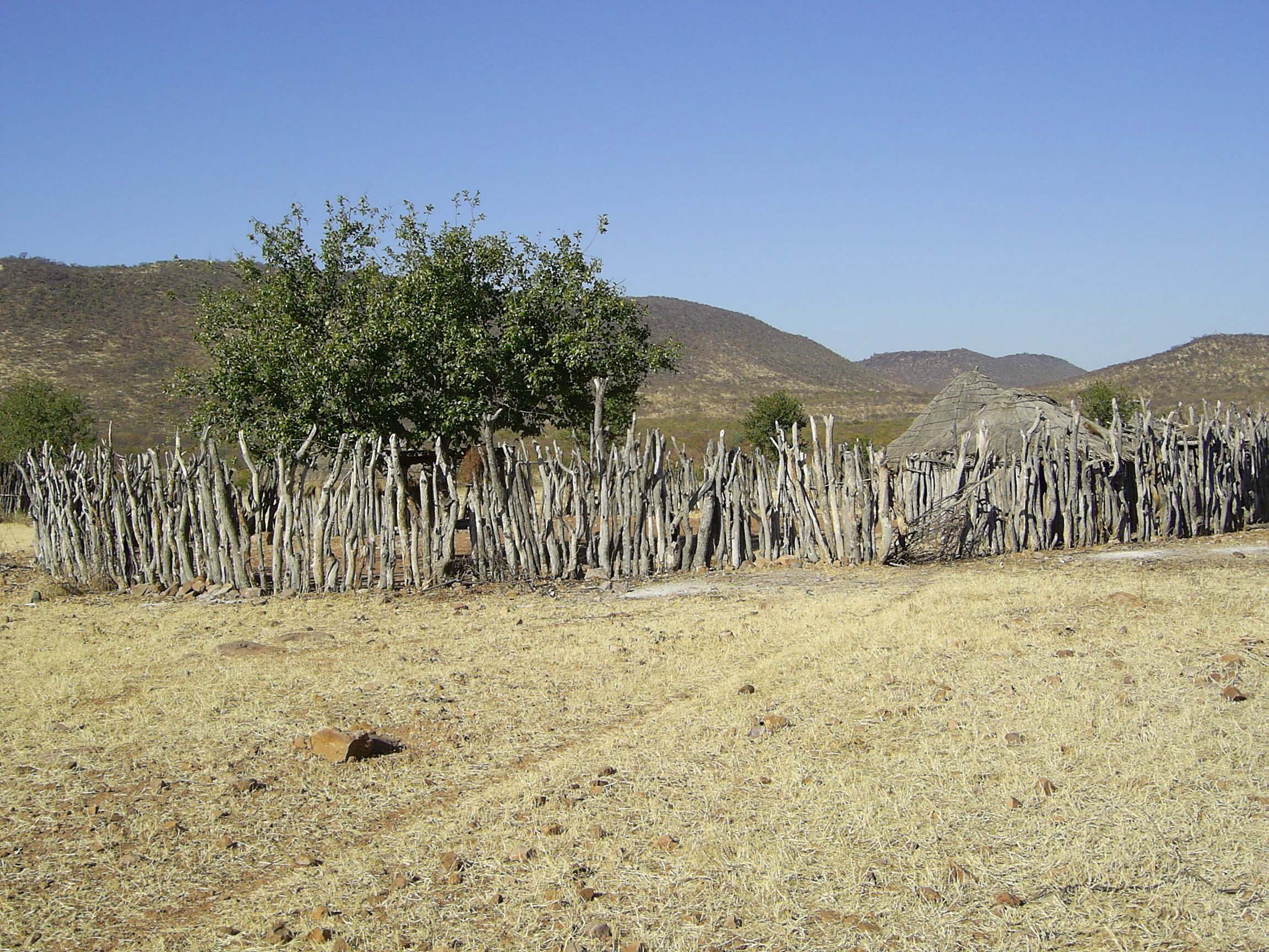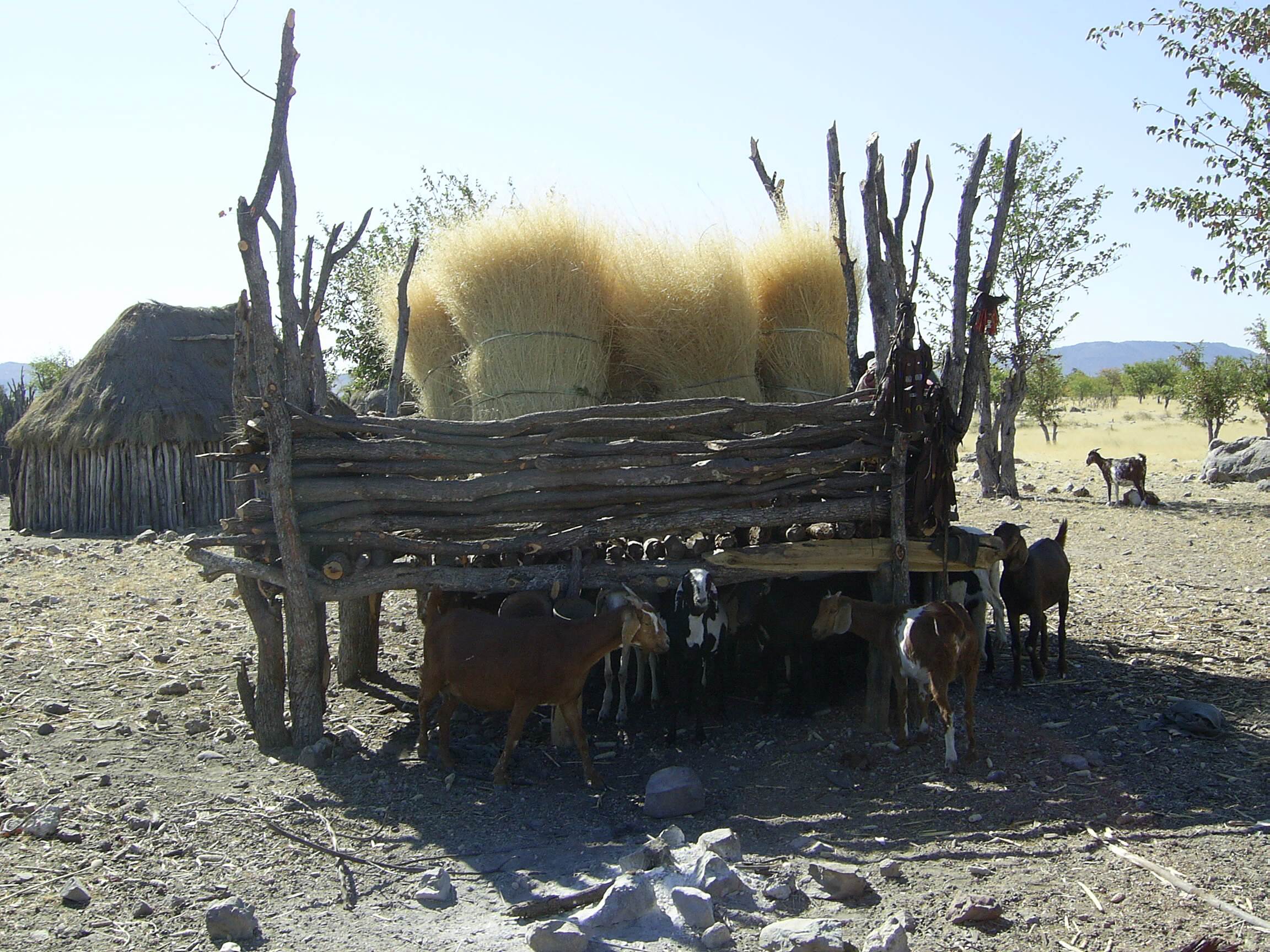 Ich schaue mich um und keiner nimmt von mir Notitz. Shopping auf angolanisch ist angesagt. In dem kleinen Dörfchen leben Macuana und die wiederum sind bekannt für ihre Schwäche an schönen bunt gemusterten Stoffen. Naja Frauen. Obwohl nur selten Besuch kommt und noch seltener Handel betrieben wird, läuft alles sehr ruhig ab, nicht vergleichbar mit unseren einheimischen Frauen in Deutschland, die wild kreischend durch die Warenhäuser mit Schnappatmung rennen. Ich habe jedenfalls erst einmal Zeit, mir alles in aller Ruhe anzuschauen. Einige Jangos sind großräumig mit dornigen Ästen und Gestrüpp umzäunt. Hier werden über Nacht die Ziegen mit untergebracht, um sie vor Raubtieren zu schützen. Das hohe Gras wiederum wird auf Stelzenbauten gelagert, um dieses wiederum vor den verfressenen Ziegen zu schützen. So ist das Leben. Die Umgebung ist eher karg, und einen Brunnen sucht man im Dorf vergebens. Hier müssen größere Wege in die Berge zurückgelegt werden, um an natürliche Wasserspeicher zu gelangen. Es erstaunt mich immer wieder, mit wie wenig Wasser hier die Menschen auskommen...