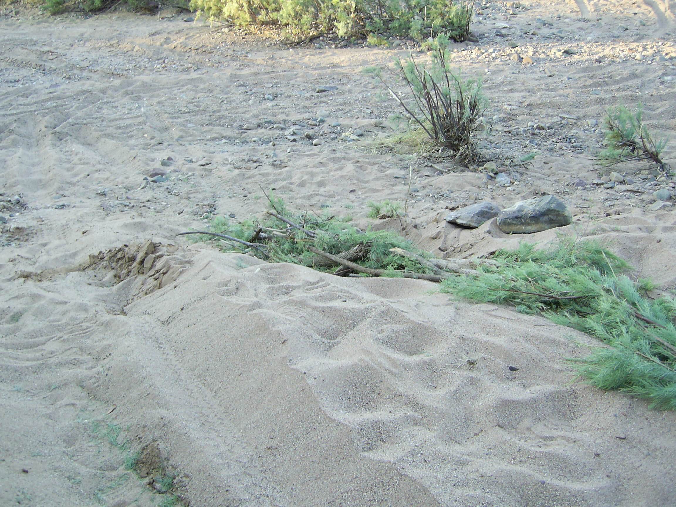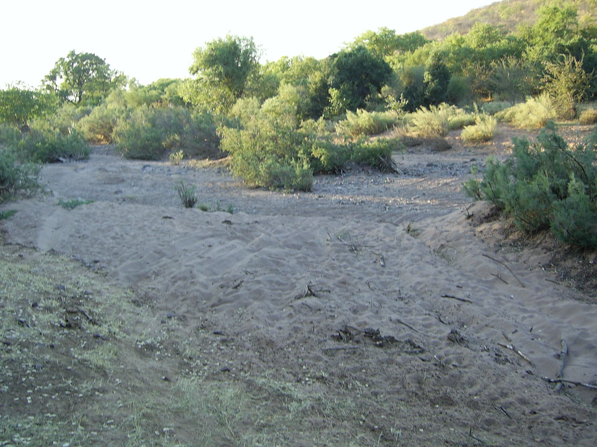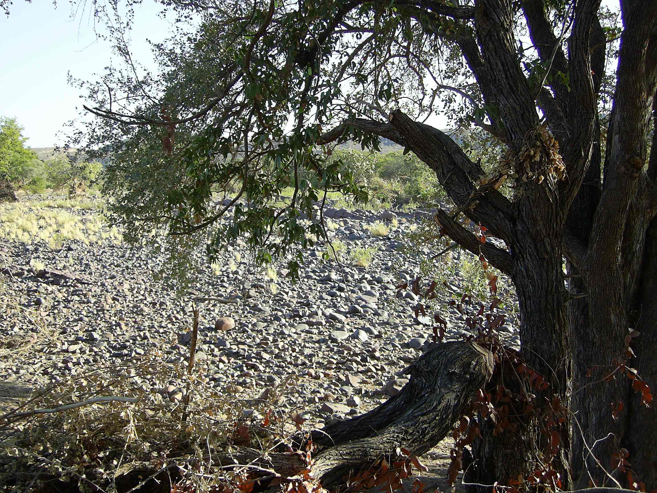 Etwas später und mit zwei neuen mitreisenden Ziegen wollen wir noch an den Fluß Corocua fahren. Die Regenzeit ist vorbei und aus dem sonst reißenden Fluss ist ein stilles Flüsschen geworden, der hier bis zur nächsten Regenzeit endet. Im ausgetrockneten Flussbett sieht man die vielen Steine, die in der Regenzeit aus den Bergen mitgerissen wurden. Francesco macht sich über eine Bergpalme her und erntet ein paar Palmenspitzen, die gekocht sehr gut schmecken. Die Rückfahrt führt uns direkt durch eine Mulola. Ein ausgetrocknetes Flussbett, welches versandet ist und so seine Gefahren beim Durchqueren birgt, die wir gleich selbst erleben dürfen. Der Toyota hat sich festgefahren, und auch mit kleinen Grabearbeiten, Zweigen und Steinen kommen wir nicht mehr frei. Ich habe dann am Ufer einen Baum ausgesucht, und zum Glück war unsere Seilwinde lang genug und wir können uns selbst herausziehen. Aber wenigstens bleiben wir von der alltäglichen Reifenpanne verschont. Es gibt kaum eine Tour, in der die Reifen von ziemlich fiesligen Dornen zerstochen werden.