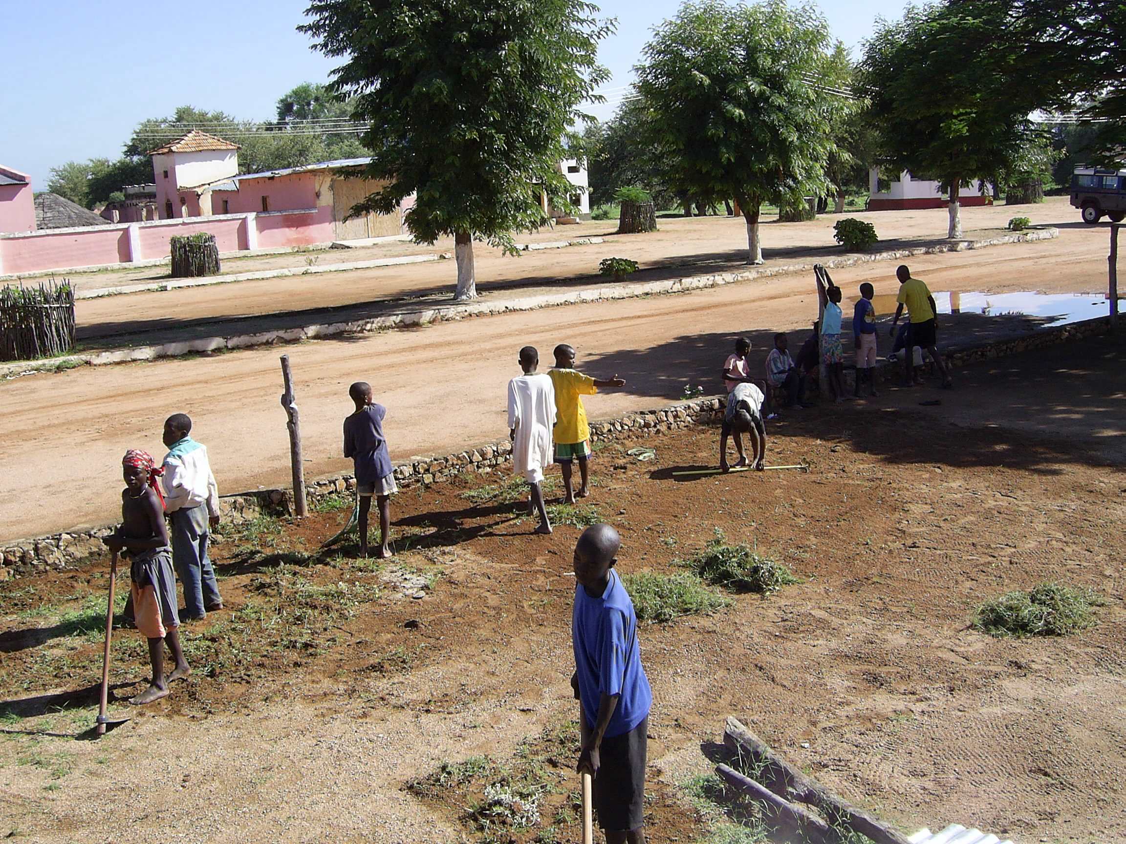 Geschafft, alle Kinder wurden geimpft. So ein Haufen von 110 quirligen Kindern kann ganz schön anstrengend sein. Aber auch im Ort geht es sehr rege zu. Das Gouverno hat für heute einen Stadtputz angesagt, denn Besuch von einem Minister, den hat man nicht alle Tage. Auch unsere tradiotionellen Volksgruppen im Ort packen mit an, selbst die ersten Kinder, die von der Impfung wieder genesen sind, sind dabei. Einige Stellen vom Unkraut befreien, Steine, die als eine Art Straßenmarkierung dienen, bekommen neue weiße Farbe, sogar auf unserer Hauptstraße werden neue Bäume gepflanzt. Mich erinnert es ein klein wenig an alte DDR-Zeiten, nur wird hier niemand so gegängelt.