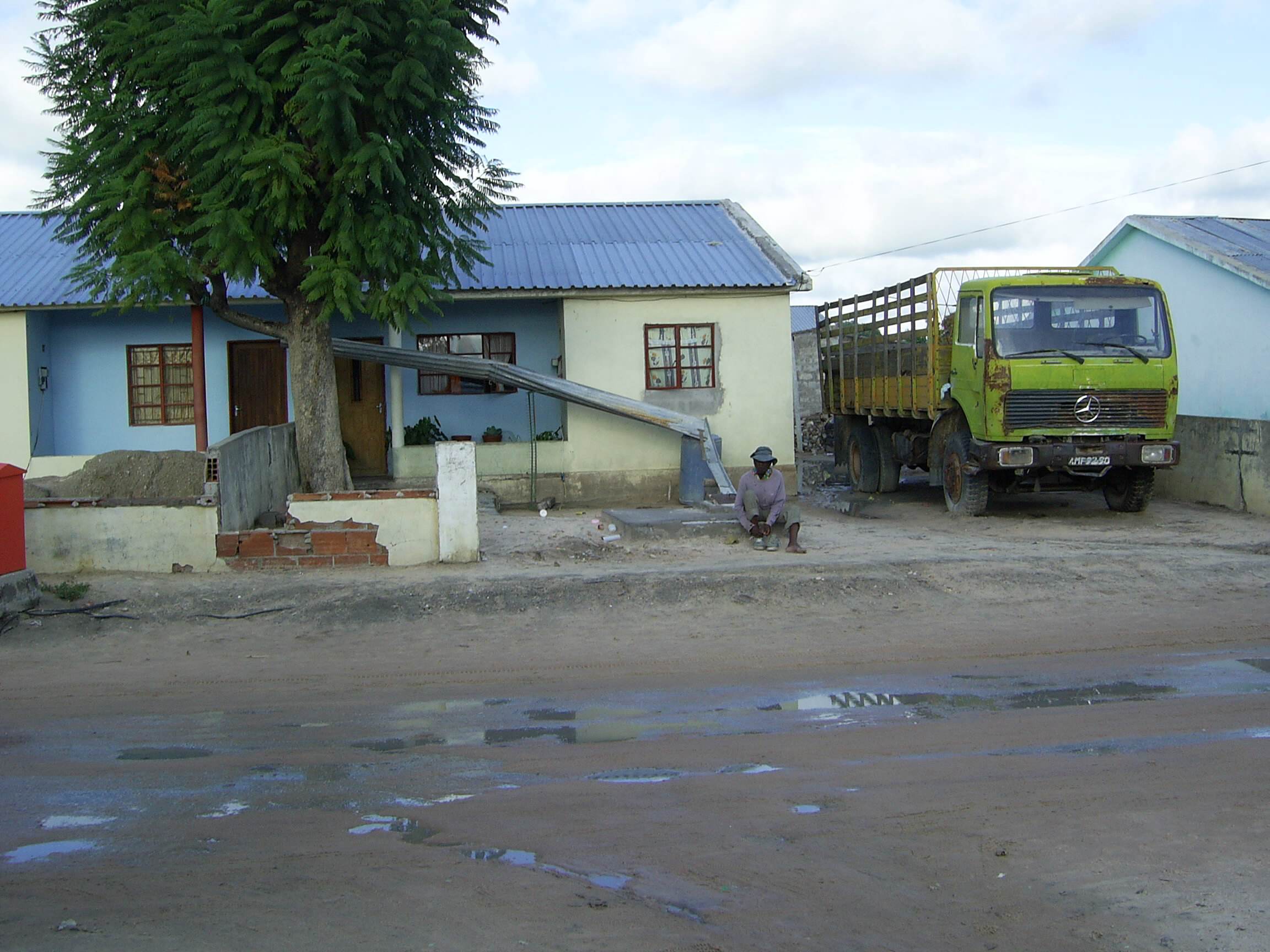 Am nächsten Morgen geht es erst einmal in das örtliche Krankenhaus, um die Medikamentenlieferungen für die vielen Außen-Med-Punkte zu organisieren. Wir bekommen unsere Patientin, die vom Baum gefallen ist, nach vielem Hin und Her auch in den richtigen Fachbereich. Ulrike ist etwas genervt, ich versuche zu schlichten, wir sind ja hier nicht in Hamburg (hat auch geklappt). Danach muss Ulrike ihre Aufenthaltsgenehmigung in der örtlichen Stelle verlängern. Wir Männer fahren erst einmal zum Baumarkt „BEN“, ein wirklich gut sortierter Baumarkt, der Vieles aus Namibia einführt. Hier bekommt man so ziemlich... fast alles. Nicht unbedingt für verwöhnte Ansprüche, aber wir Ossis haben ja auch aus dem Wenigen immer etwas mehr gemacht. Ein alter Mann aus Namibia bedient mich, denn er spricht noch deutsch und freut sich, mir alles anbieten zu können, natürlich in deutsch. Joan ist mit ein paar hundert Dollar unterwegs, um Ersatzteile für unsere Lkws zu beschaffen. Er hat da seine Quellen und das klappt immer. Wir fragen natürlich nicht, wie er das immer so hinbekommt. Weiter zu einem großen Markt für Lebensmittel. Ich habe alles eingekauft, um unsere Kinder im Internat für die nächsten Wochen zu verpflegen. Super, alles bekommen.