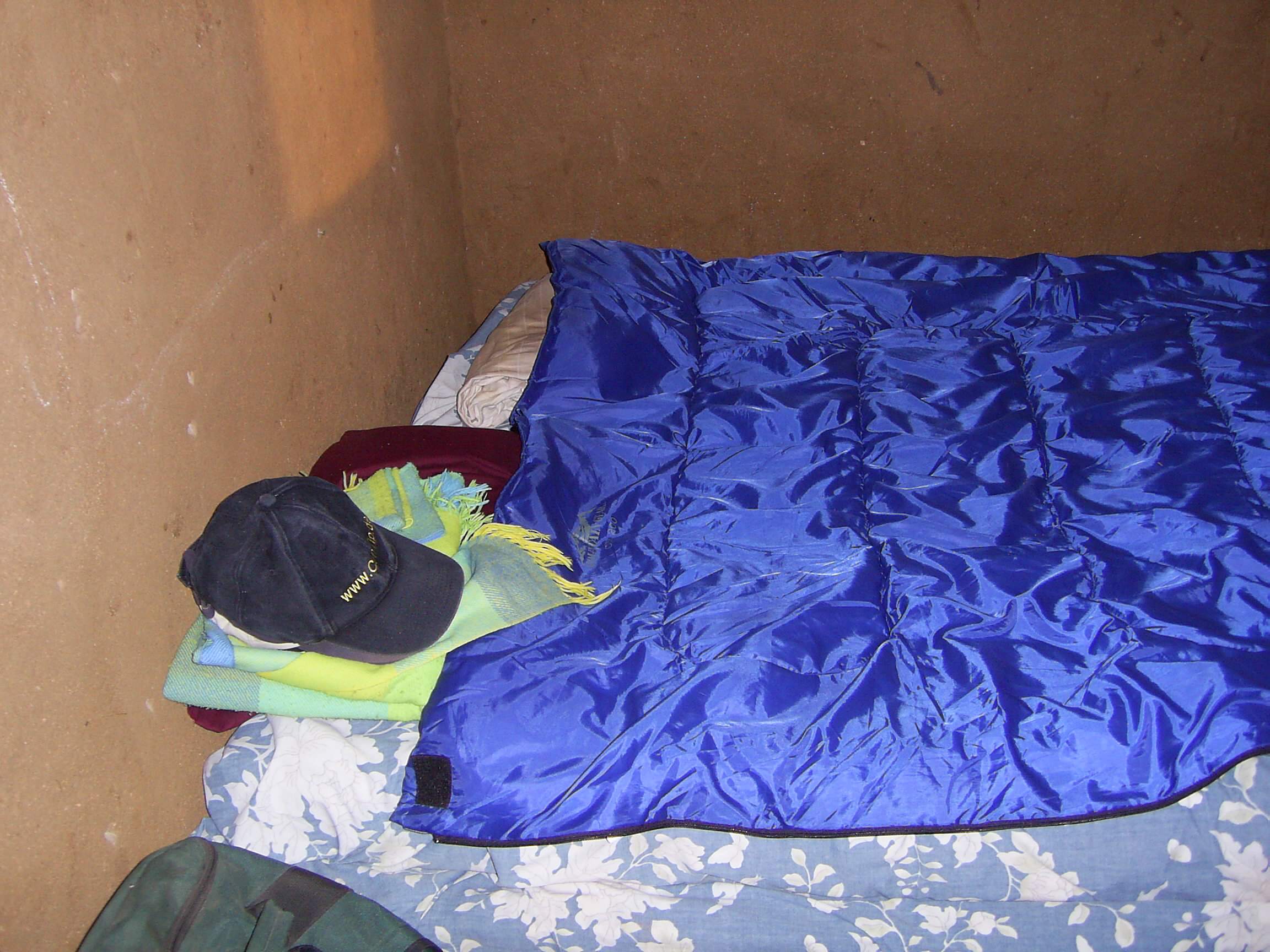 Wenn ich von einer kleinen Lehmhütte spreche, meine ich das auch so. Ca. 10 Quadratmeter, ein kleines Esszimmer und ein Schlafzimmer, alles aus Lehmziegeln gefertigt mit einem Wellblechdach, welches die Stabilität durch größere Steine erhält. Eine Einganstür und ein winziges Fenster. Den Luxus eines Klos sowie Wasser und Strom gibt es natürlich nicht. Die Küche war ein kleiner Django vor unseren beiden Lehmhütten, die wir gemeinsam nutzen. Ich bin endlich in Afrika angekommen. Ich ahne noch nicht, dass ich etwas erlebe, was nur wenige überhaupt vor mir erleben konnten.